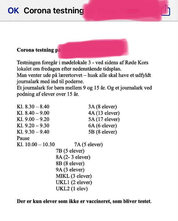 En af mine veninder er mor, og hun har modtaget denne skandaløse besked i Aula (skoleintra) i onsdags: Bemærk sidste linje: “Der er kun elever som ikke er vaccineret, som bliver testet.” Der er således tale om klokkeklar udskamning, som efter min vurdering både er ulovlig og sundhedsetisk forkastelig. Hvad […]