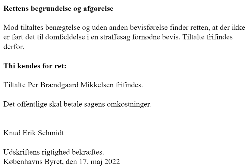 Flere har spurgt, hvad Københavns Byret har lagt til grund for min frifindelse i mundbindssagen. Jeg deler derfor her en større del af udskriften fra dombogen fra min sag (DS 0100-86990-00356-2):