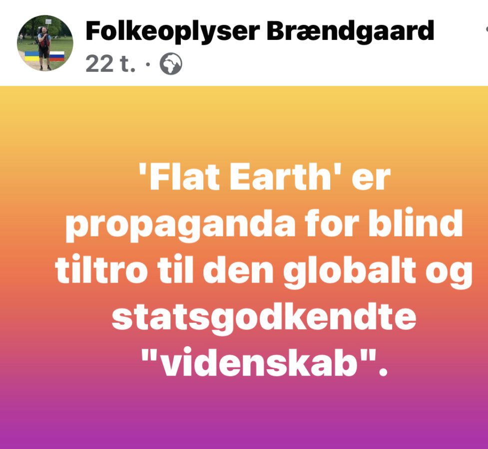 Flat Earth er blot en ekstrem udgave af den form for uvidenskabelig tænkning, der er karakteristisk for mange af dem, der tror på konspirationsteorier. Flat Earth fungerer som en slags løftestang for hele bevægelsen, der trækker de søgende sjæle længere og længere ud i det glade vanvid, hvor man er parat til at tro på hvad som helst, hvis blot DR, Sundhedsstyrelsen eller Mette Frederiksen ikke har sagt det.