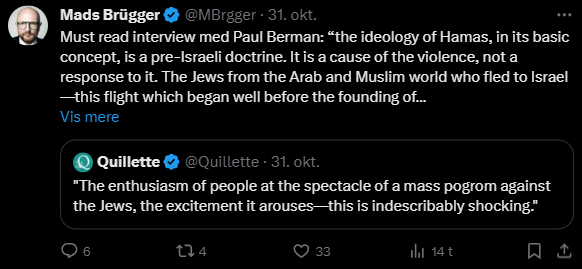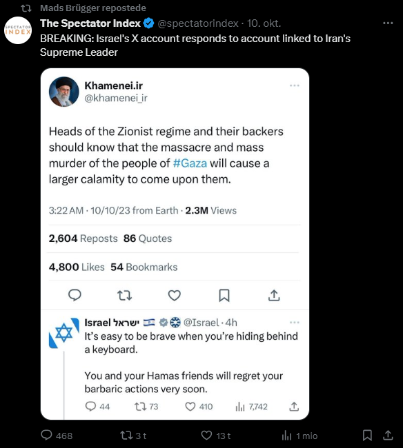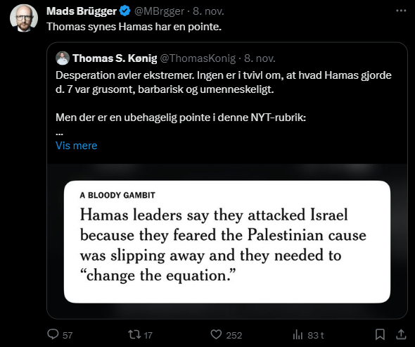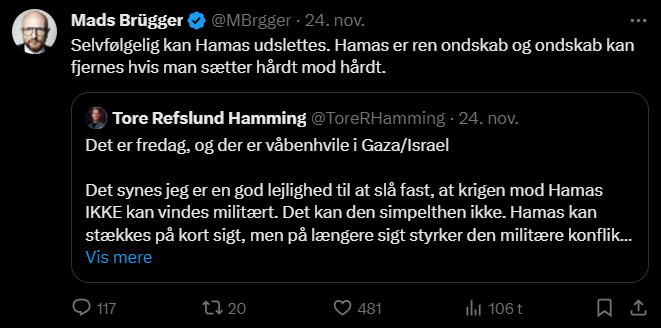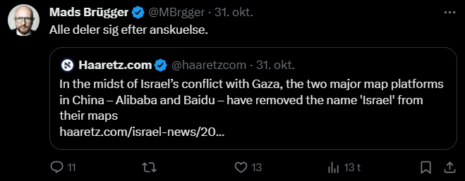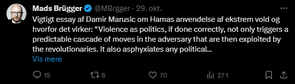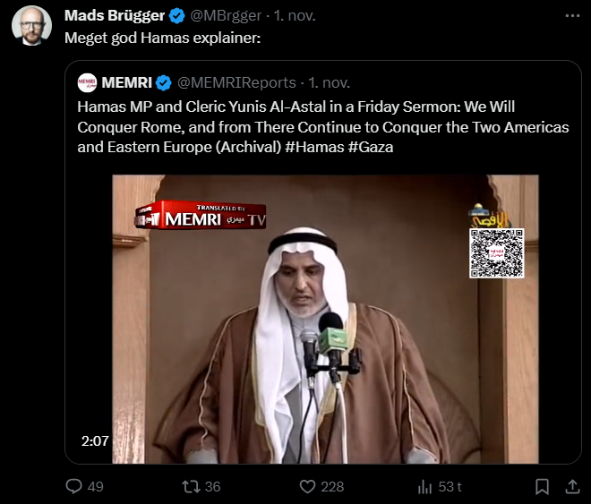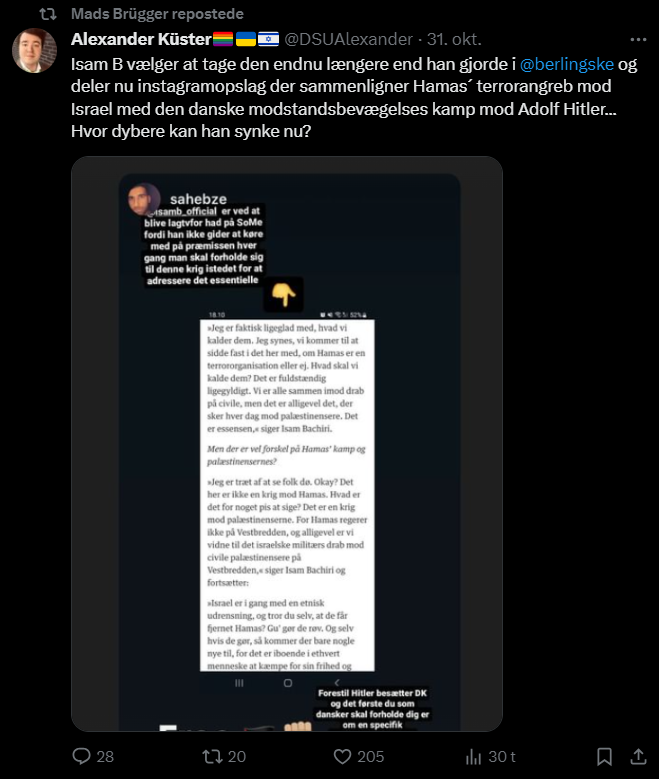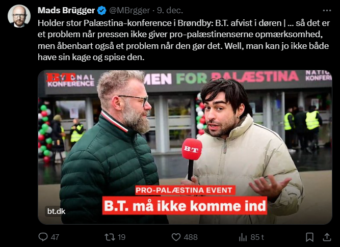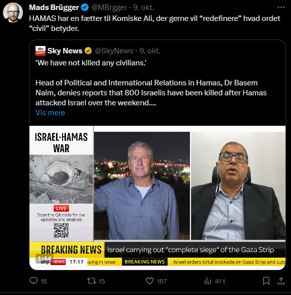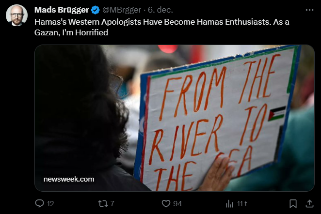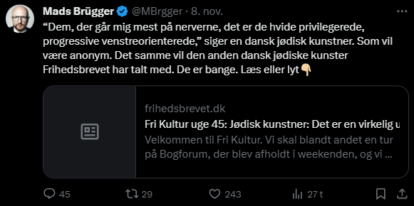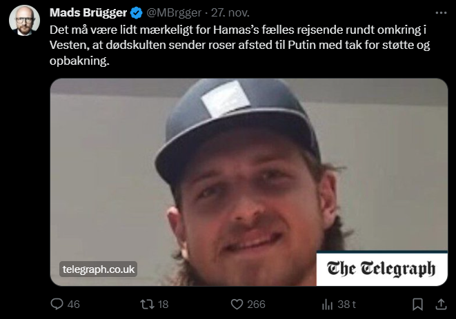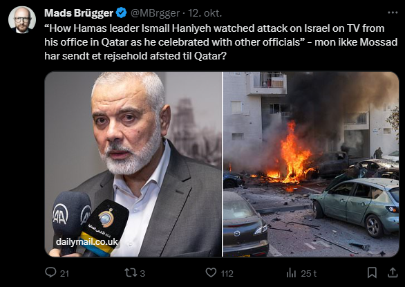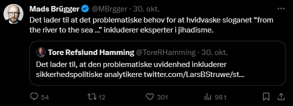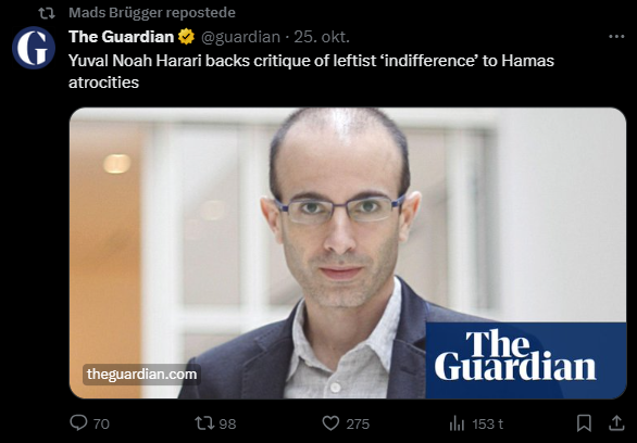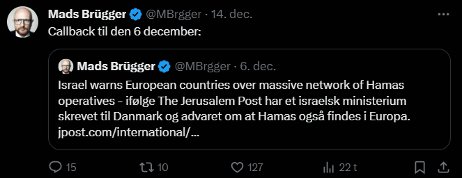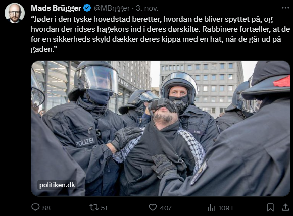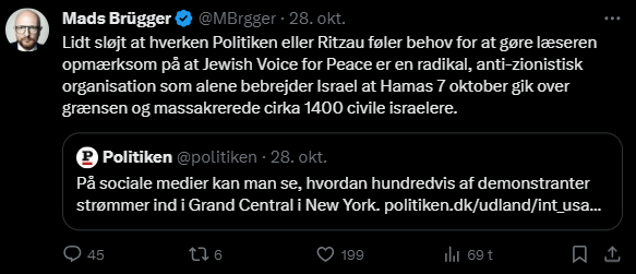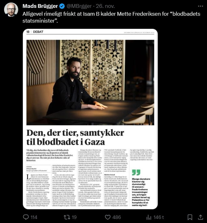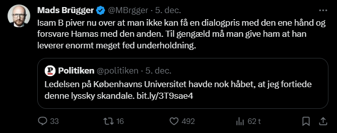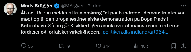 Mads Brügger er direktør, chefredaktør og journalist på Frihedsbrevet. For at få indblik i hvad han og Frihedsbrevet mener om Israel, har jeg lavet en analyse af 93 tweets af Mads Brügger på hans Twitter X-profil.