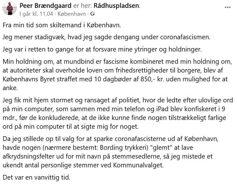 Med hensyn til om jeg iscenesætter mig selv som en martyr, så konstaterer jeg blot nogle af de konsekvenser, det har haft for mig at foretage magtkritiske ytringer og praktisere politisk sundhed som en del af holistisk sundhed. Og jeg har i denne forbindelse ikke engang nævnt det store zionistiske karaktermord i form af den falske voldtægtsanmeldelse, jeg blev ramt af fra en datter til et højtstående medlem af den zionistisk-judaistiske sekt Chabad Lubavitch tilbage i 2018-19. Det siger også en del, af Københavns Politi har nægtet at mødes med mig, da jeg har ønsket at fremlægge mine argumenter og beviser for, at kvinden var en zionistisk honningfælde sendt i byen for at ødelægge mit navn via en MeToo-sag.