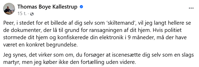 Thomas Boye Kallestrup udgav senere, ligeledes på Facebook, denne kritik af mit opslag og foto: