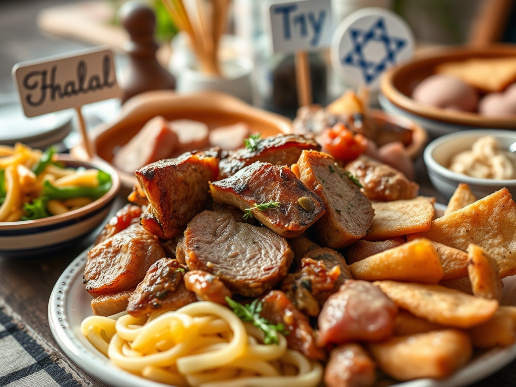 Svinekød i alle former betragtes af både islam og jødedom som uren. Kategorien af uren mad kaldes ‘haram’ indenfor islam og ‘ikke-kosher’ indenfor jødedom. Kød fra andre dyr er rent (dvs. ‘halal’) indenfor islam, hvis al blodet er drænet fra kødet, før det bliver tilberedt og spist. Det er, hvad en halal-slagter står for. På samme måde kræver jødedom, at dyr slagtes på en måde, der omfatter ofring til Gud og dræning af blod. Indtagelse af blod er tabu i både islam og jødedom, så ingen blodpølse på bordet der.