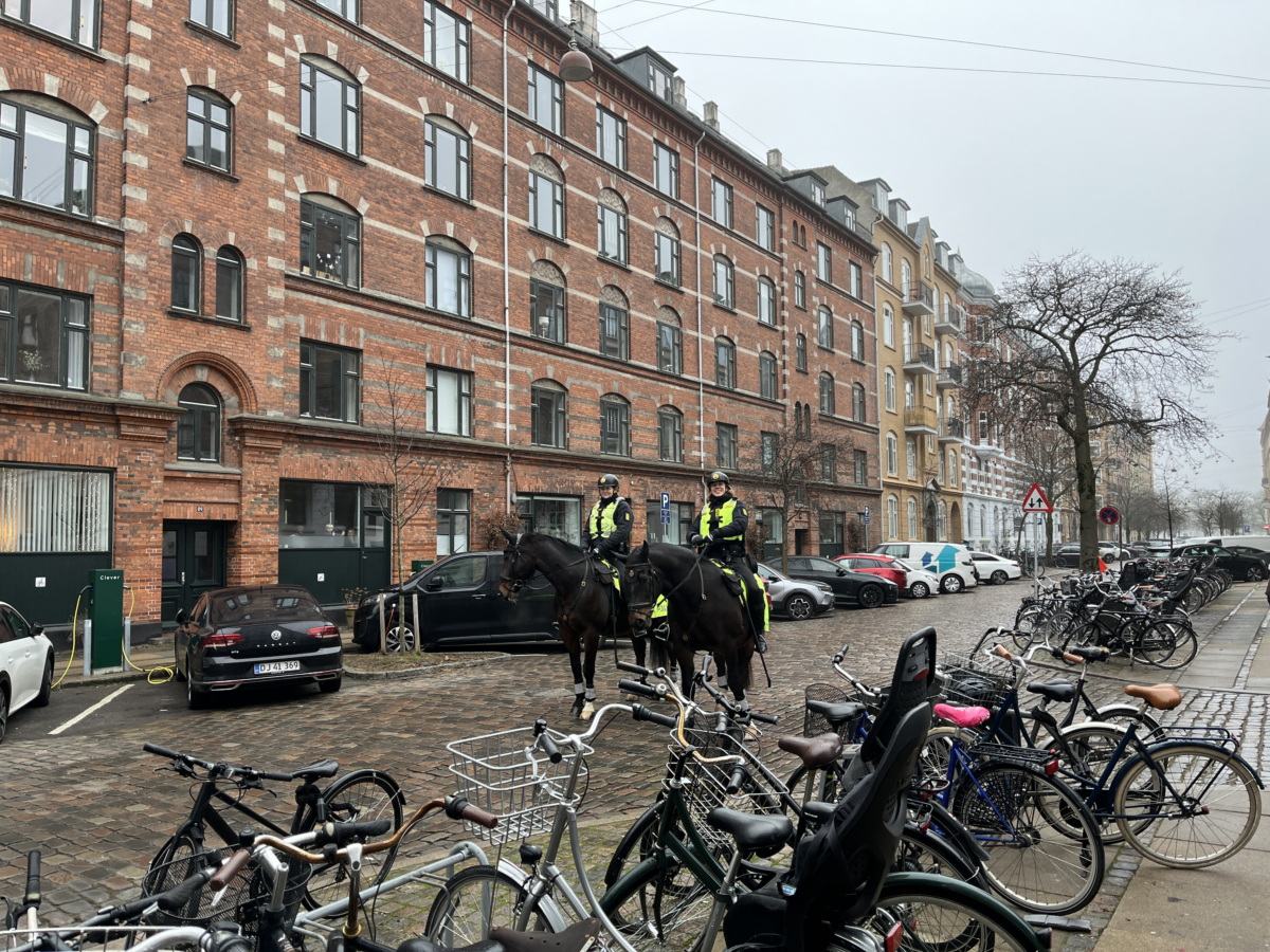 I dagens anledning var der ridende politi ude foran min gadedør. Jeg bad dem smile til kameraet: