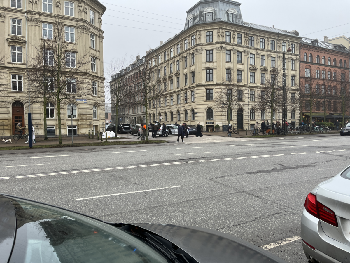 Politiet havde pyntet vejen foran den amerikanske ambassade inkl. mini-politi-iglo-tipier: