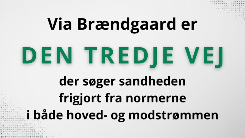 Den Tredje Vej er sandhedens smalle sti, der forholder sig kritisk til både hovedstrømmen og den alternative strøm. Hovedstrømmen er de nyheder, fortællinger og informationer, der i Danmark bliver formidlet af de regeringsstøttede medier (hovedstrømspressen) og de eksperter, der bliver tildelt taletid der. Den alternative strøm var før i tiden primært indenfor sundhed, men der … Læs resten af Den Tredje Vej