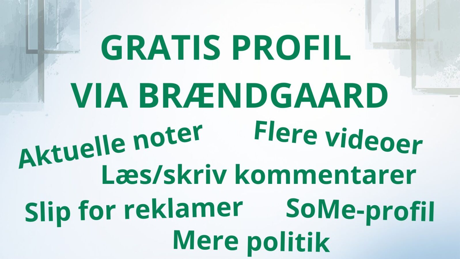 Med en gratis Via Brændgaard-profil kan du læse og skrive kommentarer til alle 1.390 offentlige indlæg, og du har adgang til mere indhold.